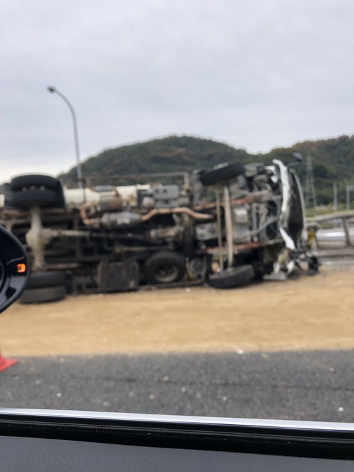 甚平 Na Twitteru 姫路バイパスでトレーラー単独事故 間に2台挟んでいきなりヘッド振ってからの振り返しからの横転